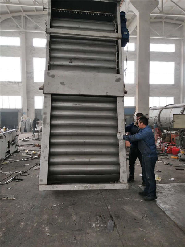 污水从垂直式孔板细格栅清污机- -侧中间进入,从内向外通过两侧的开孔栅板排出,拦截在内部的栅渣随开孔栅板旋转提升至上部排渣区,在此栅渣被冲洗系统冲洗掉入内部的集渣槽内,然后通过输送装置送入下一道设备中,而网板也同时被冲洗干净并进入下-一个工作循环。